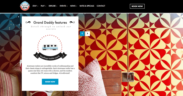 "The Grand Daddy hotel is known for its rooftop trailers, of course, but with the new website, we wanted people to discover all the other great features on offer – luxury rooms, a rooftop cinema, and the Sky Bar, for example," said Stuart. "We also simplified the navigation of the website so that people could get straight into booking a room, as many users want to do, or easily browse around for a bit first to find out more."